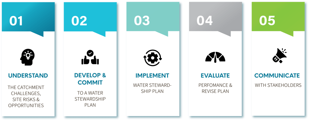 Any organisation can use the Water Stewardship framework to improve water management. The 5-step process keeps efforts manageable and allows impacts to be traced back to actions. The steps guide organisations to:
